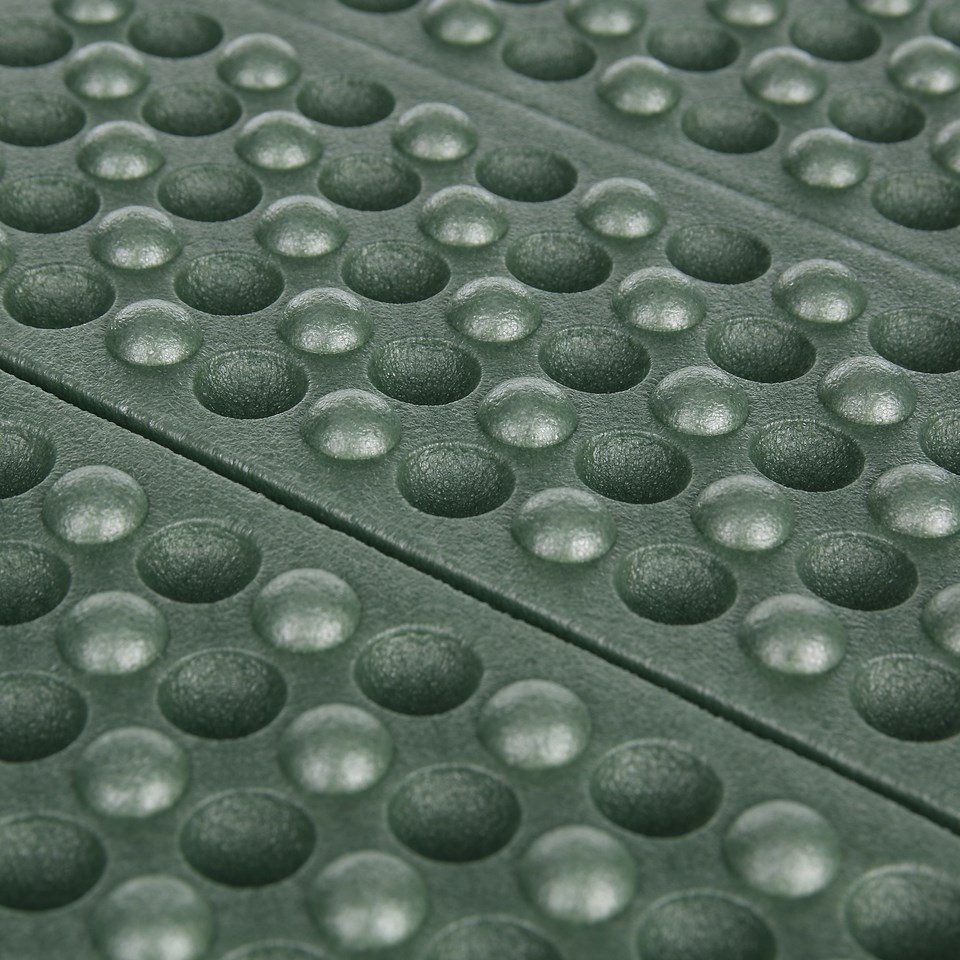 Tapis pliable mesurant 390 x 300 x 10 mm lorsqu'il est déplié et 300 x 100 x 40 mm lorsqu'il est plié. Fabriqué en polyéthylène, un matériau léger et souple qui résiste à l'humidité. Plus d'informations