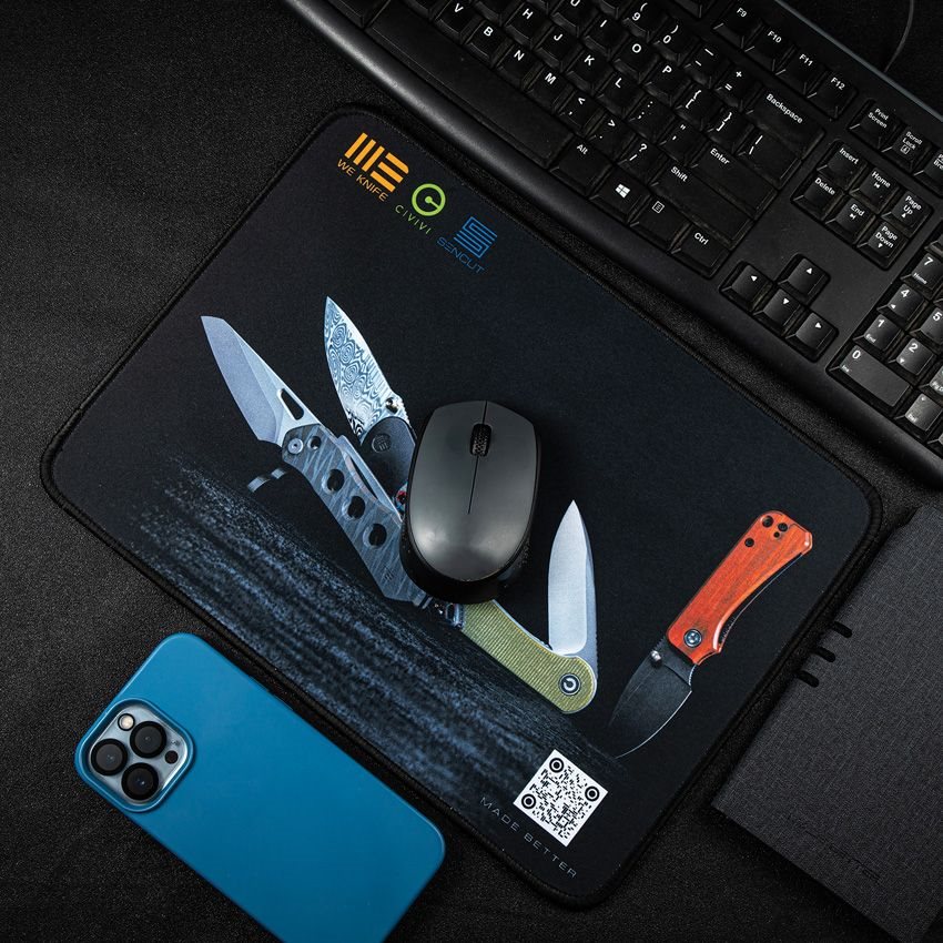 Tapis de souris représentant quatre couteaux pliants.