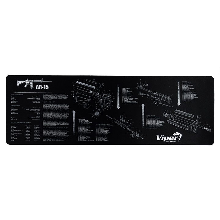 Tous les amateurs d'armes apprécieront ce tapis pratique qui sert de surface de travail pour l'entretien des armes longues et autres. Sur le tapis, vous trouverez les pièces détachées du fusil d'assaut à chargement automatique AR-15 avec l'historique de fabrication et les spécifications. Le tapis est fabriqué en caoutchouc de 3 mm d'épaisseur. Tapis pratique