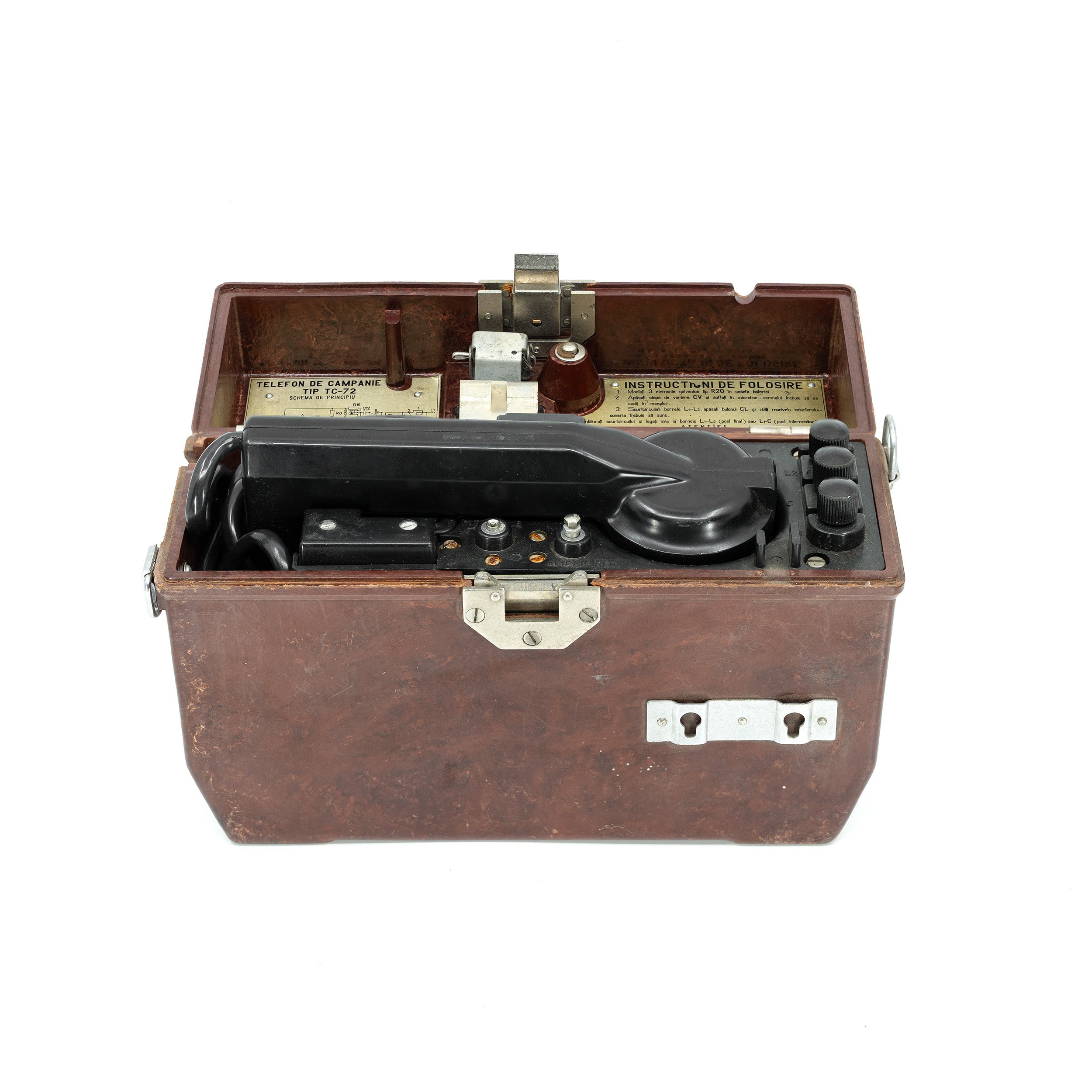 Téléphone provenant des stocks de l'armée roumaine, d'origine. Alimenté par 3 piles D R-20 (non fournies), la bandoulière n'est pas incluse. Plus d'informations