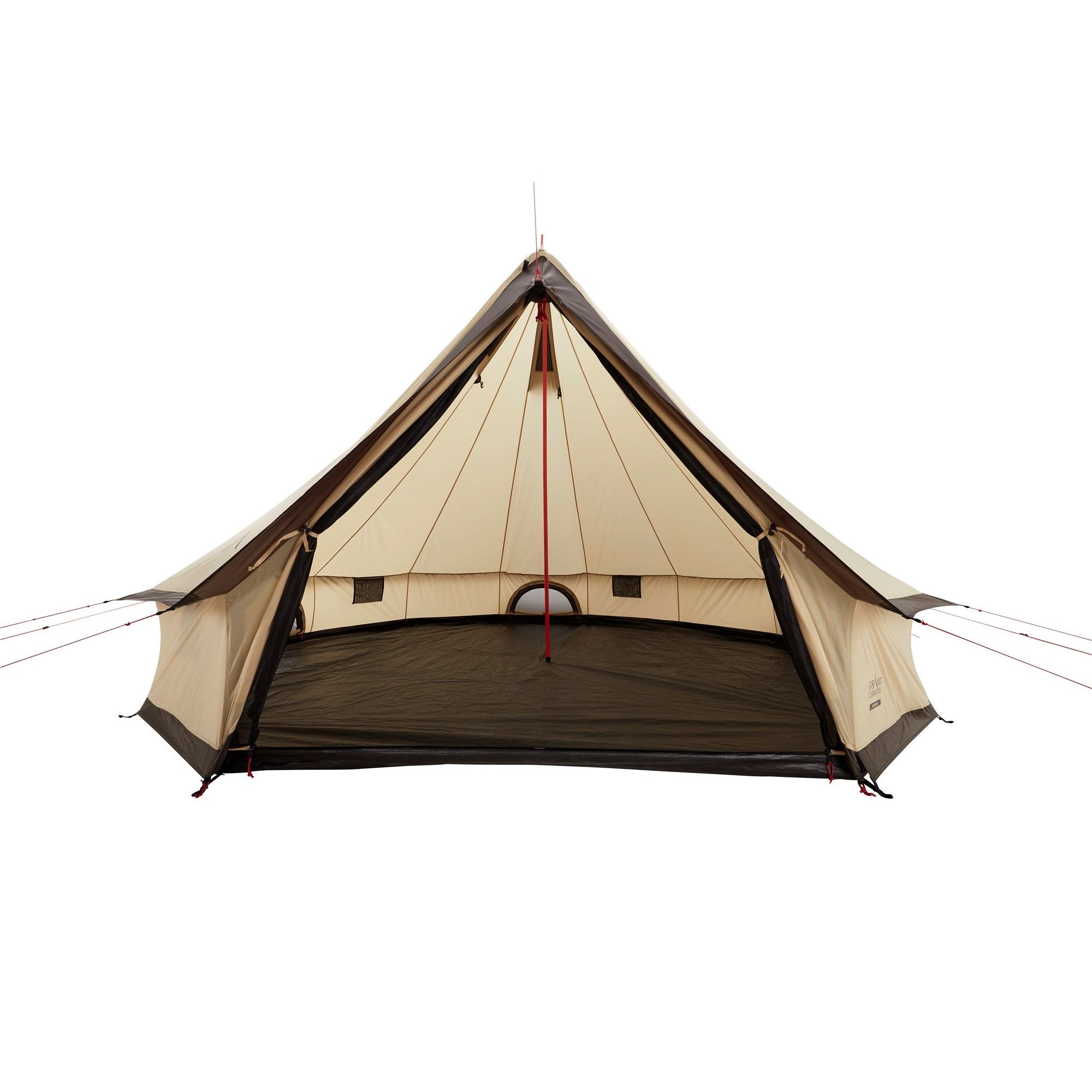 GRAND CANYON INDIANA 8 est une tente de type yourte (tipi avec tapis de sol). Elle est fabriquée en polyester et, grâce à son mât central en acier, elle est facile à monter. Le tapis de sol augmente considérablement la surface utile au sol. La tente est équipée d'une moustiquaire intégrée.