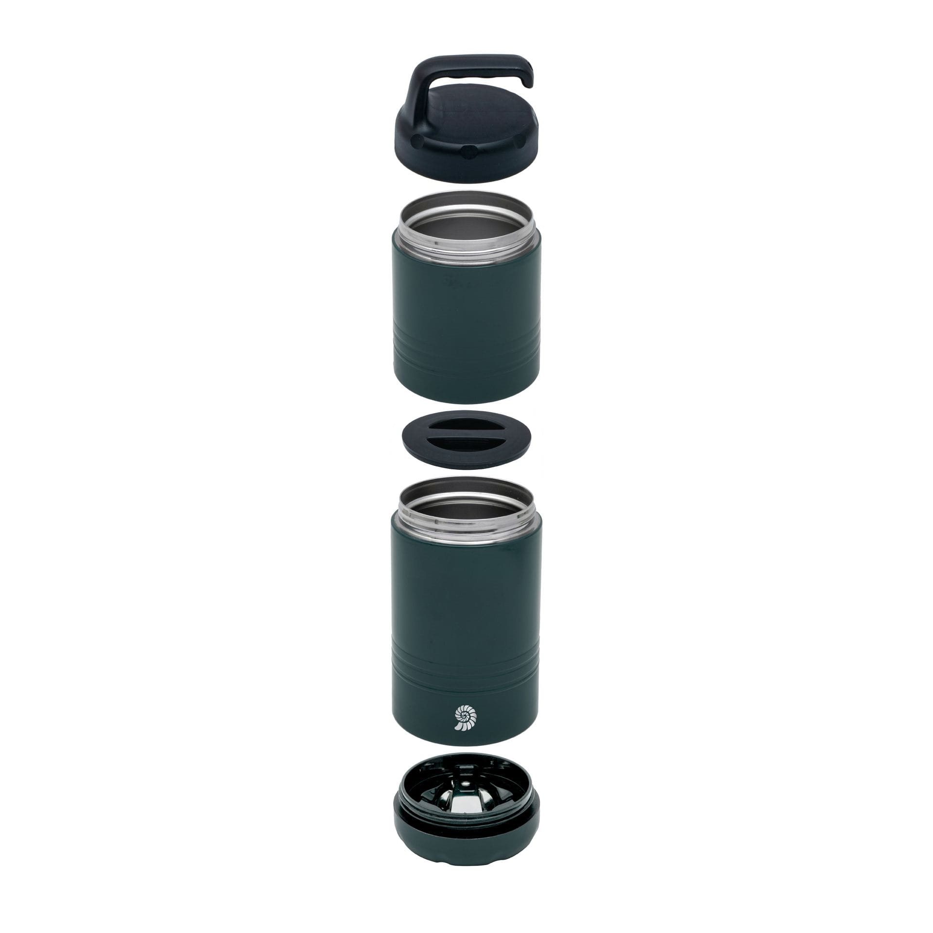 Une cuillère pliable en acier inoxydable est intégrée dans la partie inférieure du couvercle, vous permettant ainsi d'avoir toujours tout le nécessaire à portée de main. L'ouverture large facilite le remplissage, la consommation et le nettoyage. Le filetage est compatible avec d'autres récipients de la même série, ce qui permet de les empiler.