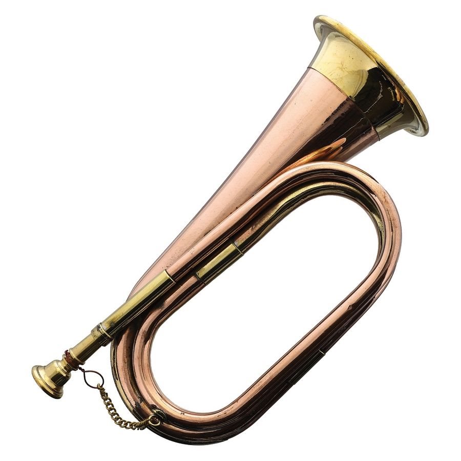 Trompette bicolore grâce aux matériaux utilisés : laiton et cuivre. Longueur totale : 28 cm. Plus d'informations