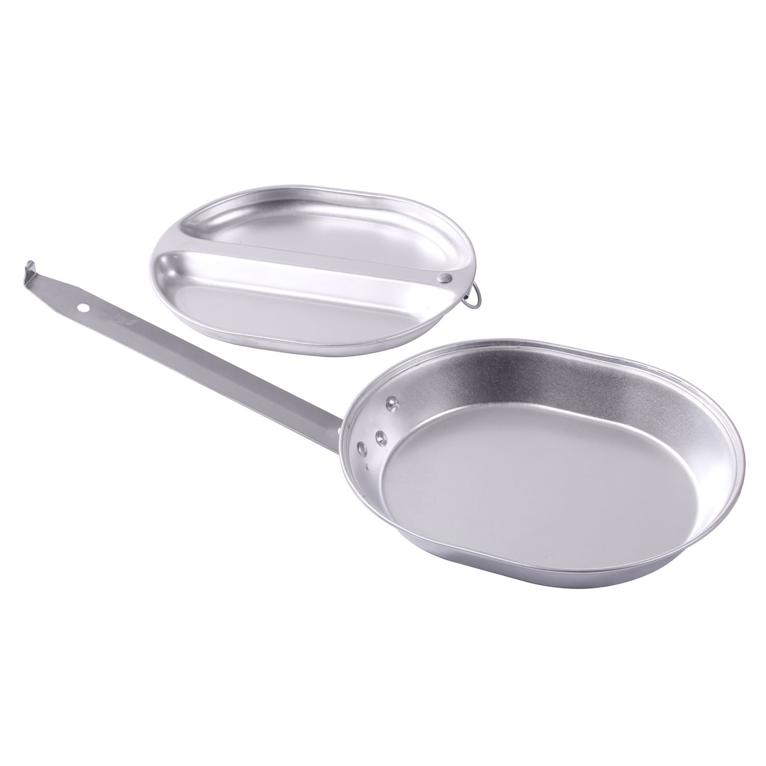 Ensemble composé d'une poêle et d'un couvercle pouvant servir de bol. Matériau : aluminium.