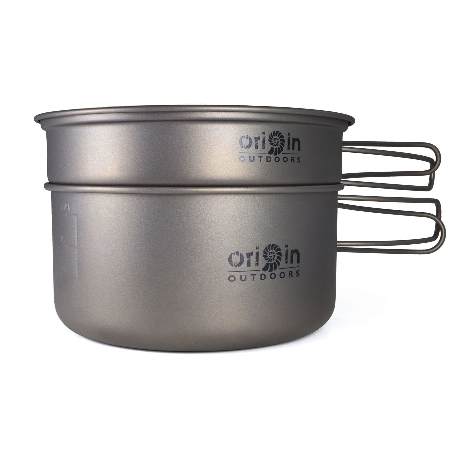 Cet ensemble de vaisselle est fabriqué en titane de haute qualité, il est très léger et robuste. Les poignées rabattables permettent un rangement peu encombrant, de sorte que l'ensemble peut être facilement emballé. La surface lisse garantit un nettoyage facile. Grâce à l'indicateur de volume dans la casserole et au sac de transport en filet, cet ensemble est le compagnon idéal pour les aventures en plein air. indicateur de volume dans la casserole et son emballage en filet, cet ensemble est le compagnon idéal pour les aventures en plein air. Très léger et résistant, il est facile à transporter et à ranger.