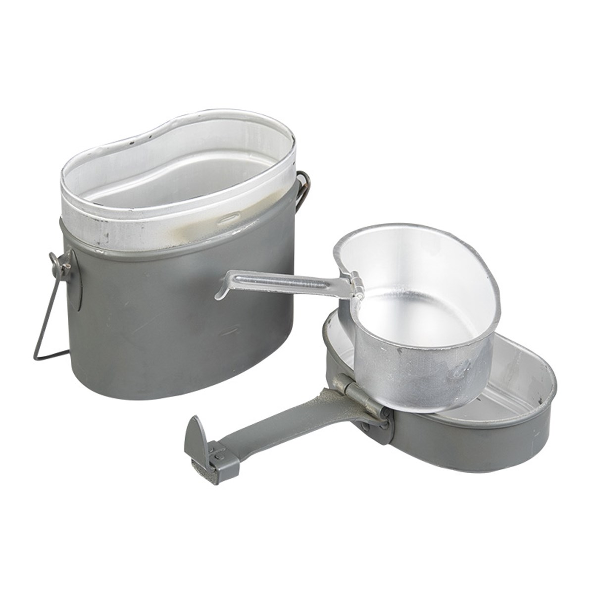 Set de table en aluminium - casserole, bol, poêle avec poignée permettant de suspendre la casserole au-dessus du feu. Plus d'informations