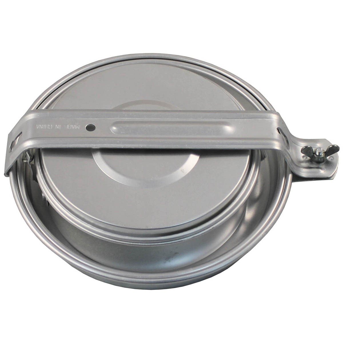 Ensemble de vaisselle en aluminium. 1 poêle. 1 casserole. 1 tasse en plastique. 1 bol. 1 couvercle. Plus d'informations