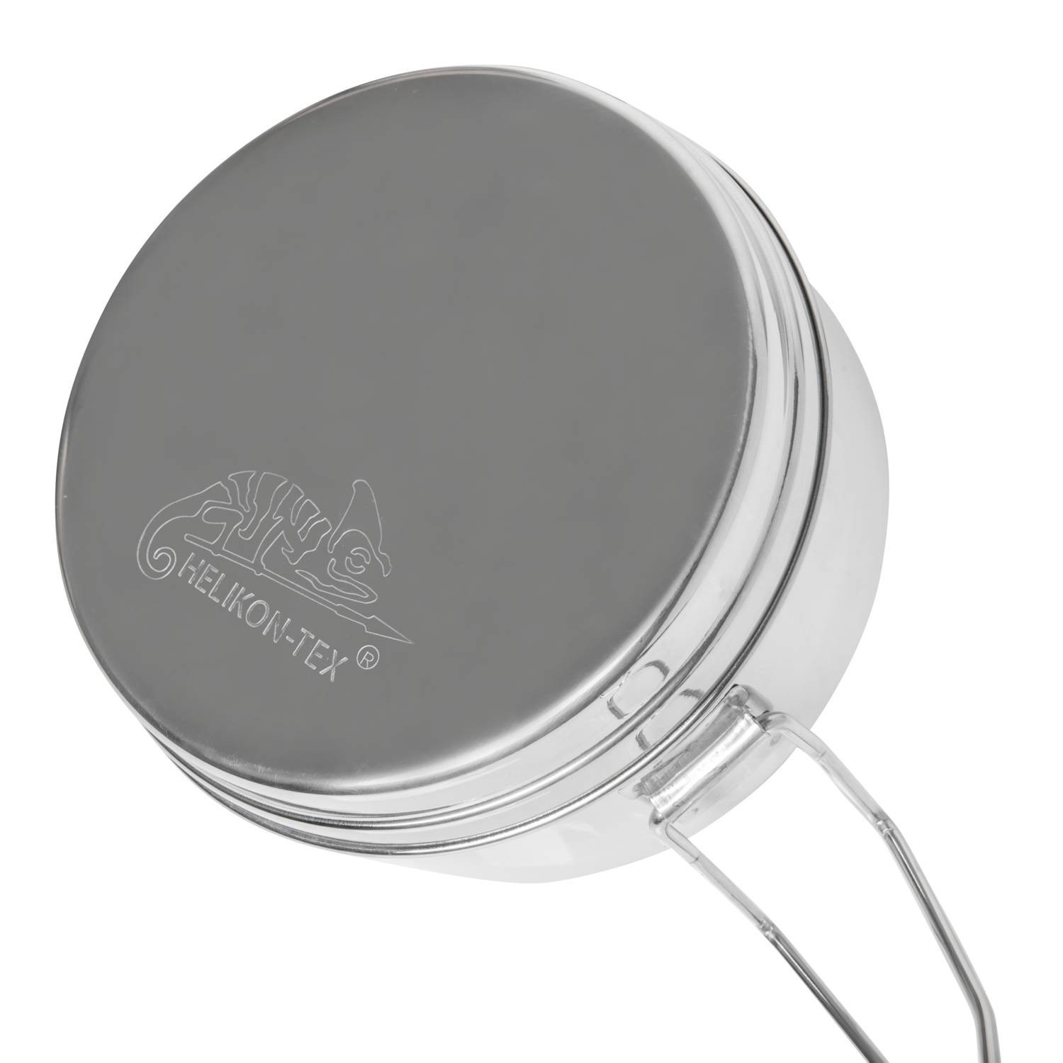 Gamelle classique en acier inoxydable, 3 pièces. Comprend un grand bol, un couvercle-assiette et un petit bol. Fabrication de qualité en acier inoxydable. Logo Helikon gravé sur le couvercle.