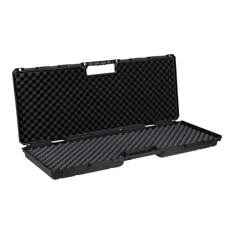 Valise robuste et fortement rembourrée, conçue pour transporter confortablement des armes à feu. La valise est fabriquée en polymère résistant aux chocs (IK08), à l'eau (IP55) et à la poussière, complété par un rembourrage intérieur en mousse épaisse qui protège efficacement le contenu de la valise contre les dommages. Les serrures coulissantes qui sécurisent la valise sont conçues pour ne pas s'ouvrir, même en cas de choc violent. Une poignée centrale solide permet de la transporter confortablement. La valise est conçue pour être facilement empilable si nécessaire.