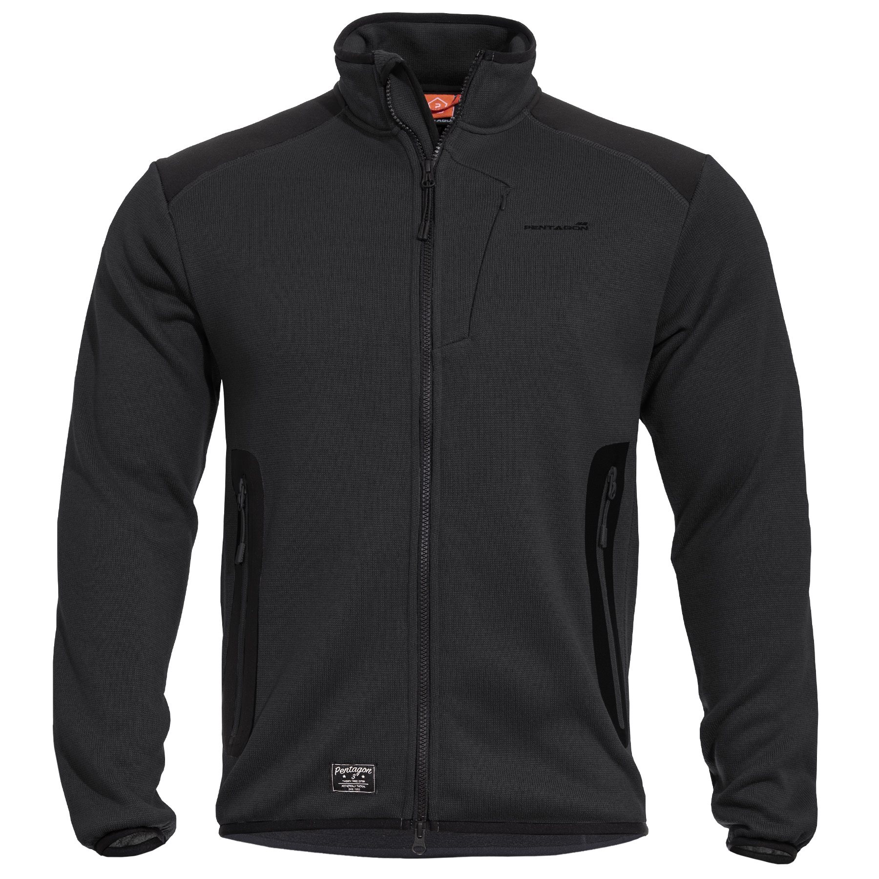 Veste chaude AMINTOR du fabricant grec PENTAGON. Elle est confectionnée en polaire douce, dont la texture rappelle celle des pulls tricotés classiques. La veste comporte trois poches au total, deux poches classiques pour les mains et une poche cachée au niveau de la poitrine. Les trois poches se ferment à l'aide de fermetures éclair YKK ®. La veste AMINTOR se distingue par sa résistance, car elle est renforcée au niveau des coudes par des inserts hard shell et, pour plus de confort, elle est recouverte d'un soft shell rembourré au niveau des épaules. La fermeture éclair principale YKK® traverse tout le centre de la veste et se termine par un petit protège-fermeture dans le col.