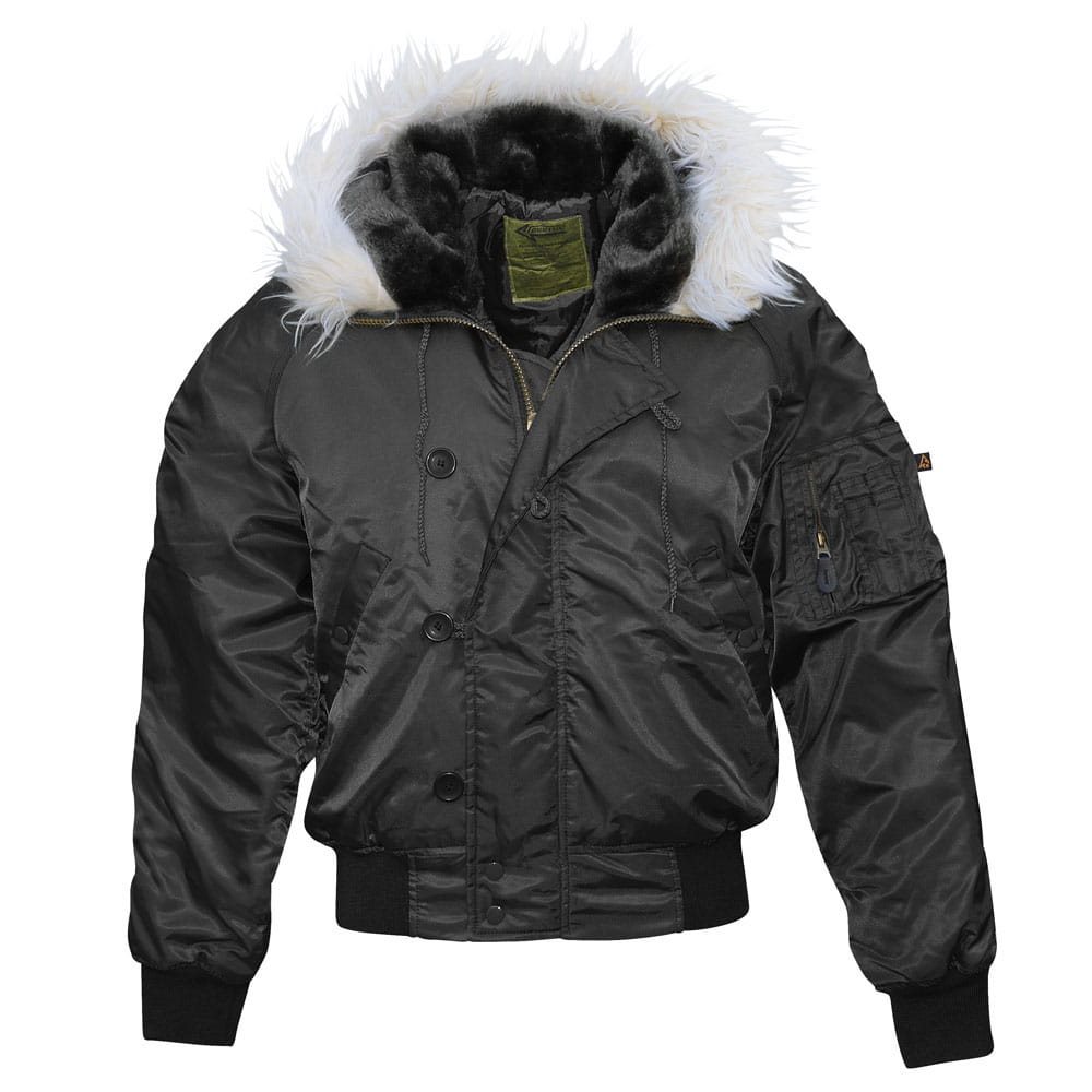 Veste d'aviateur légendaire isolée jusqu'à la taille, type N2B, connue sous le nom d'Alaska. L'extérieur de la veste est en nylon résistant, la doublure et le rembourrage sont en polyester chaud. La fermeture est assurée par une fermeture éclair métallique et une patte de boutonnage avec des boutons. À la taille, vous trouverez de grandes poches pour les mains qui peuvent être fermées à l'aide de boutons-pression. Sur l'épaule gauche, vous trouverez quatre compartiments pour les stylos et une petite poche pour les petits objets, fermée par une fermeture éclair. À l'intérieur de la veste, vous trouverez deux poches pour vos objets de valeur. Les poignets et le bas de la veste sont dotés d'un bord-côte élastique qui empêche le vent de s'engouffrer et les pertes de chaleur indésirables lorsque vous bougez. La capuche de la veste est profonde et dotée d'une doublure en fourrure synthétique chaude.