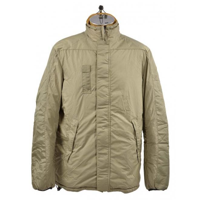Veste réversible (verte/sable) provenant des stocks de l'armée néerlandaise ou britannique. Imperméable, séchage rapide, coupe-vent. Fermeture à glissière, poches pour les mains. Plus d'informations