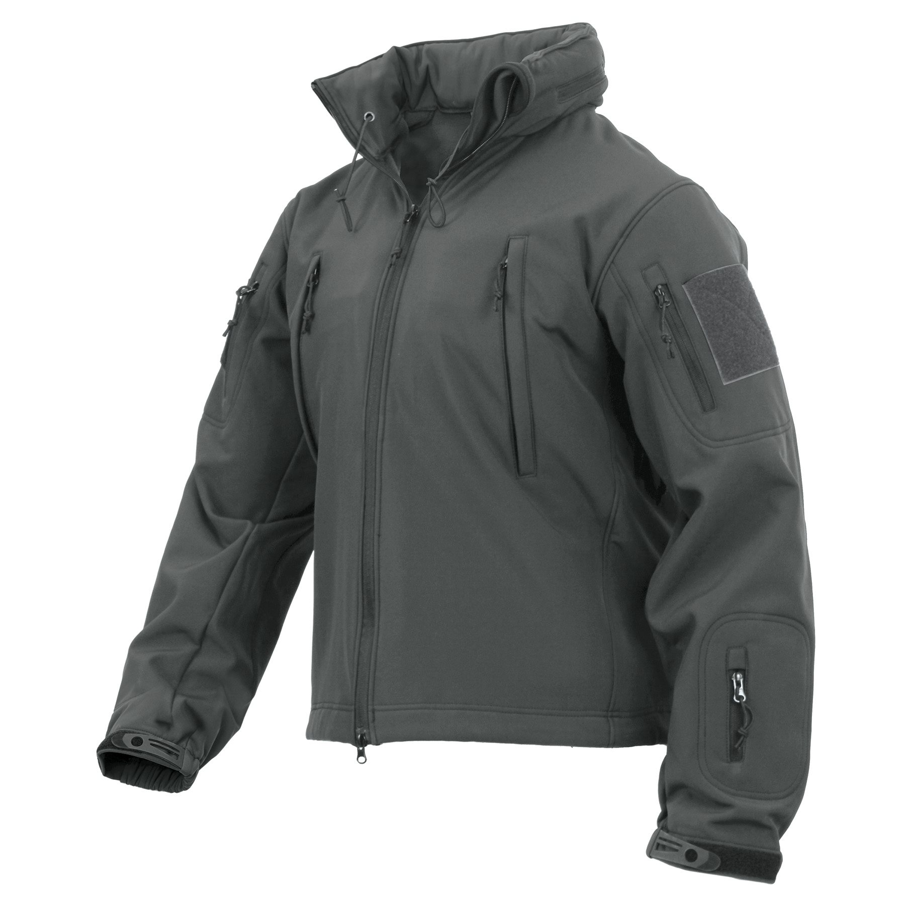 Veste tactique softshell exceptionnelle avec capuche (imperméable et coupe-vent) et poches extérieures et intérieures. Plus d'informations