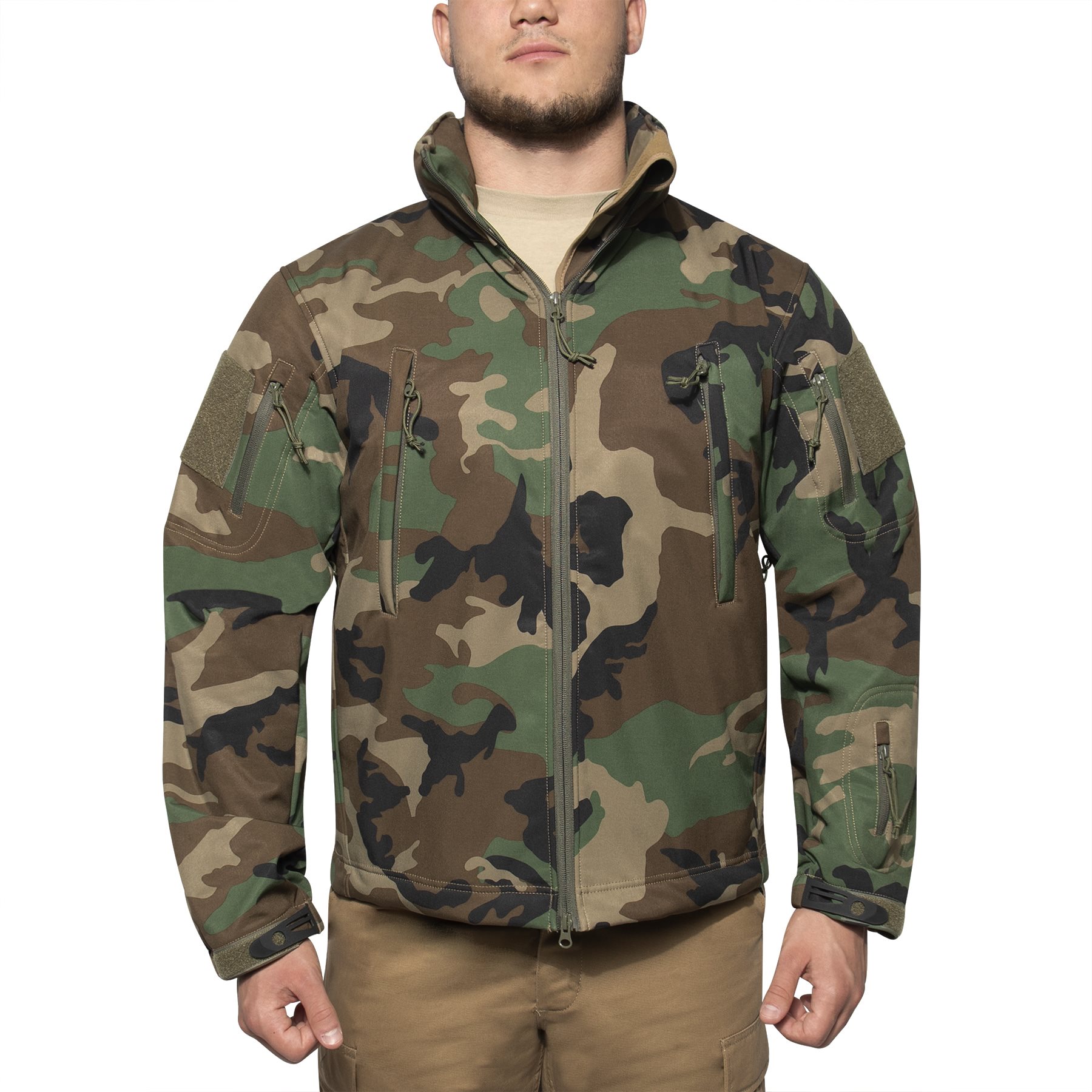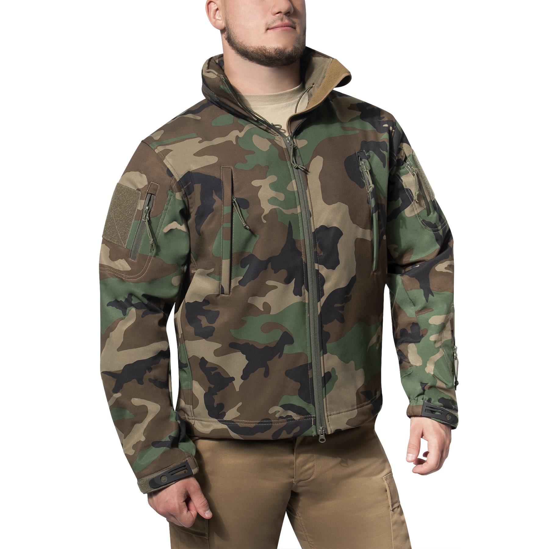 Veste tactique softshell exceptionnelle avec capuche (imperméable et coupe-vent) et poches extérieures et intérieures. Plus d'informations