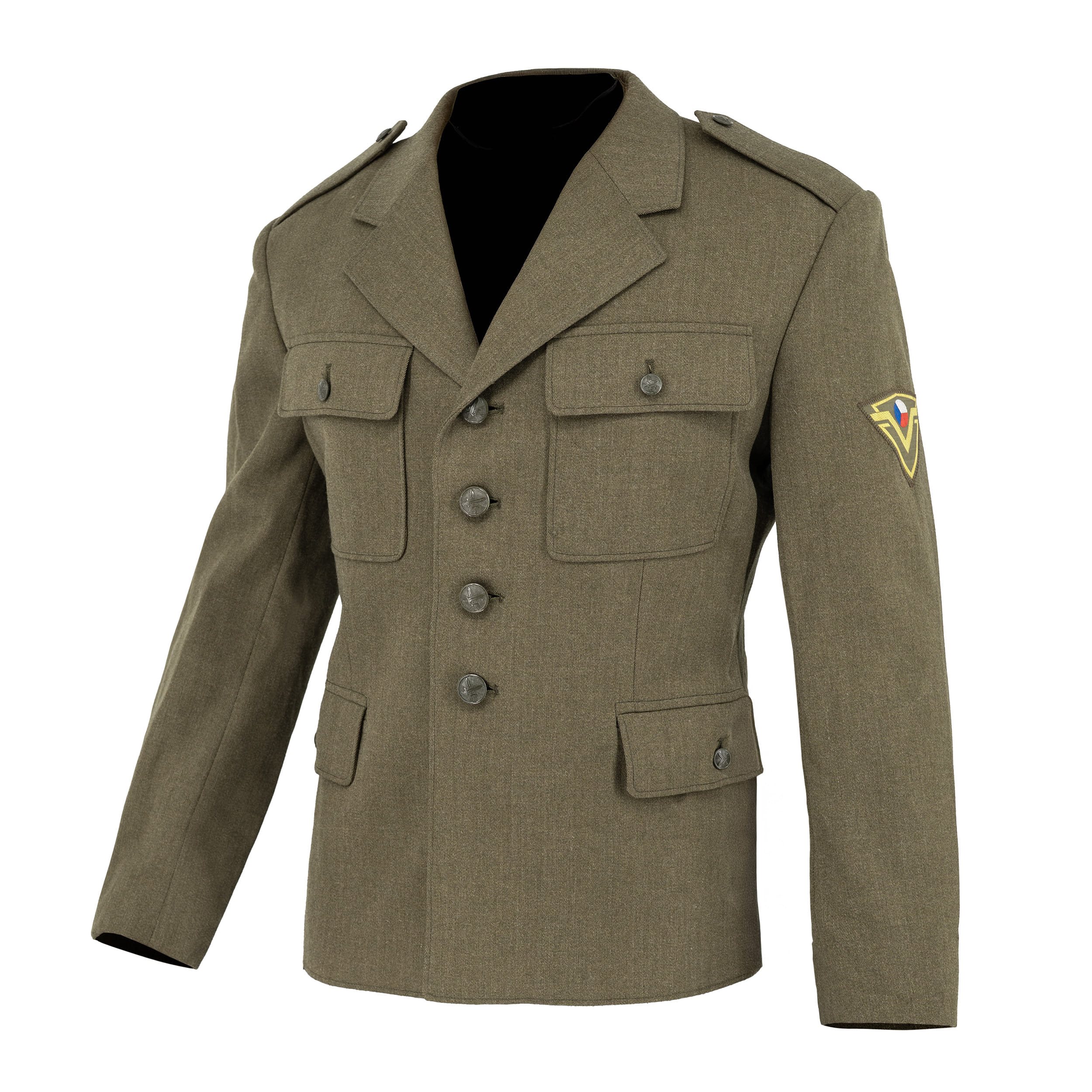 Veste de sortie authentique de l'Armée populaire tchécoslovaque (ČSLA), modèle vz.63, dans une version verte classique. Cette pièce historique d'uniforme est idéale pour les collectionneurs, les reconstituteurs ou les amateurs du style militaire rétro.
