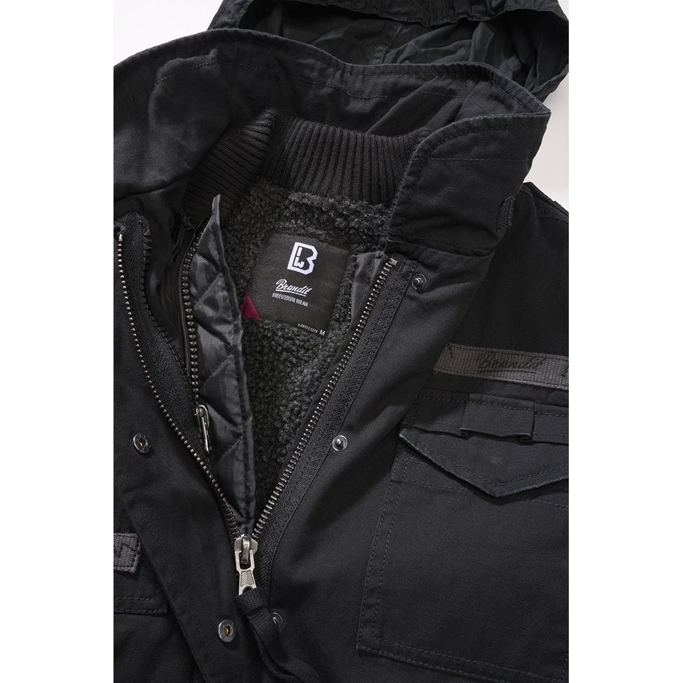 Veste pour femmes haut de gamme, légèrement délavée, dont la coupe s'inspire de la légendaire veste M65. Elle est fabriquée en coton épais. La fermeture est assurée par une fermeture éclair métallique robuste, protégée contre les courants d'air par une patte à boutons-pression. La veste dispose d'une doublure intérieure chaude qui s'attache à l'aide d'une fermeture éclair. Le col de la veste cache une capuche accessible par une fermeture éclair. Quatre poches avant permettent de ranger vos affaires. Chaque poche est dotée d'un rabat robuste fermé par un bouton-pression. La taille de la veste peut être ajustée au niveau de la taille, des poignets et de l'ourlet inférieur.