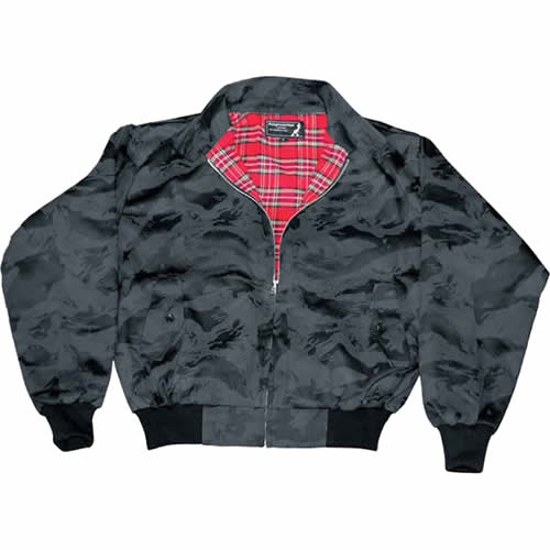 Veste de style bomber avec doublure à carreaux rouges.