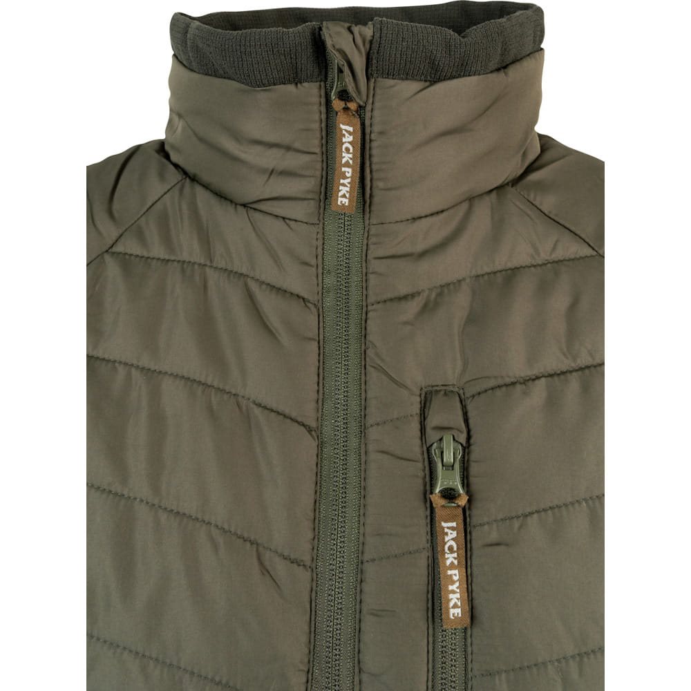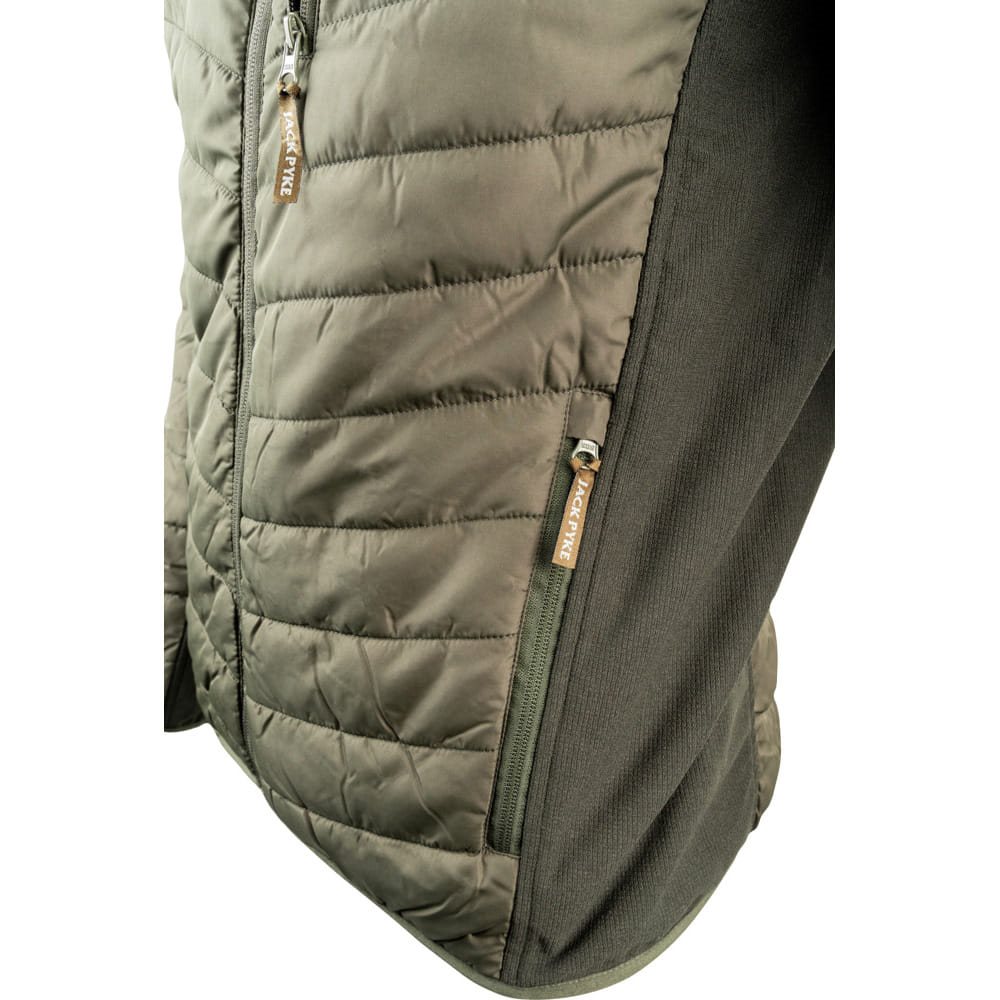 Veste HYBRID isolée conçue pour un usage quotidien, de la marque JACK PYKE. La veste présente une coupe élastique, rehaussée d'empiècements contrastés sur les côtés. Elle est dotée de trois poches zippées pour ranger de petits objets. Plus d'informations