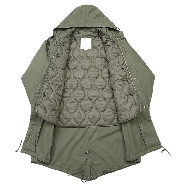 Parka M-51 FISHTAIL, réplique du manteau d'hiver adopté par l'armée américaine pendant la guerre de Corée. Cette parka a été développée et est destinée aux conditions climatiques les plus froides. Elle est équipée d'une doublure amovible chaude. Elle a obtenu son surnom de FISHTAIL en raison de la partie arrière de la veste qui, lorsqu'elle est ouverte, ressemble à une queue de poisson.