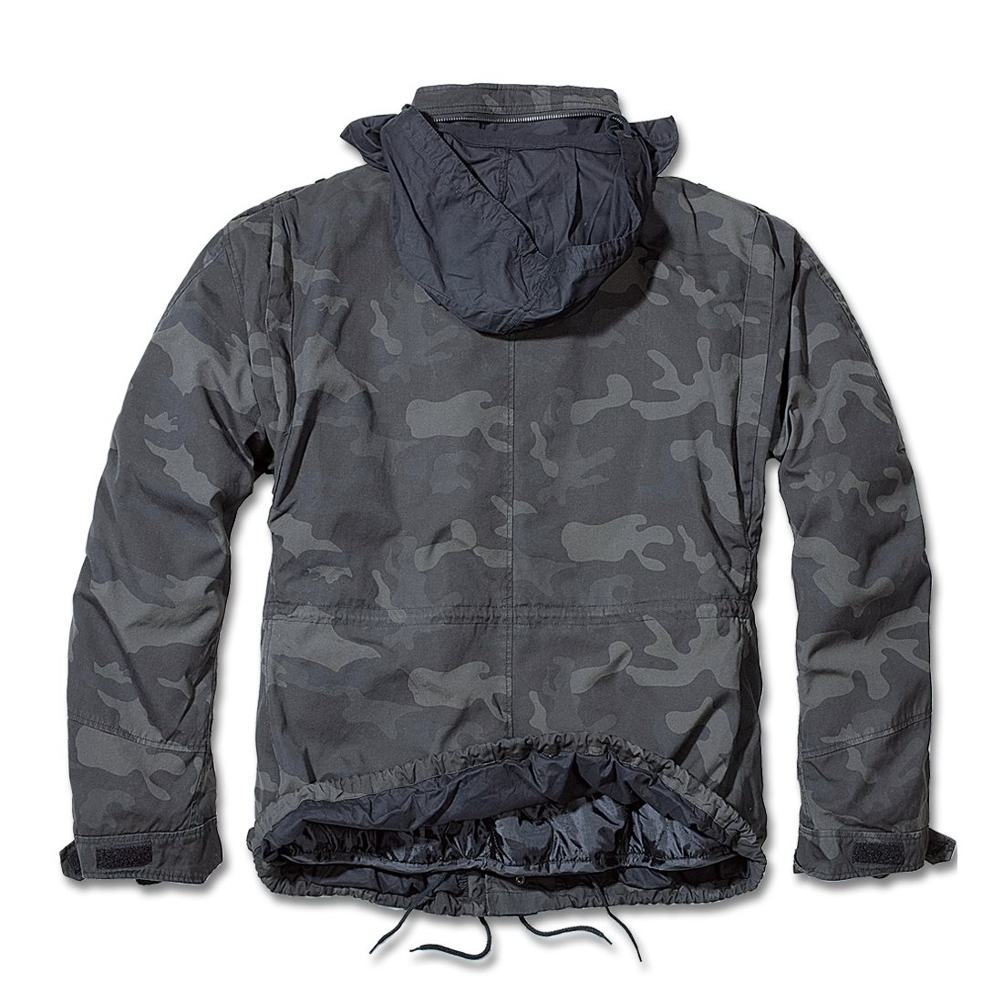 La M-65 se caractérise par deux grandes poches poitrine, deux poches spacieuses à l'avant sous la taille, une capuche simple en coton dissimulée dans le col avec possibilité de resserrer l'ouverture pour le visage et des bretelles à boutons.