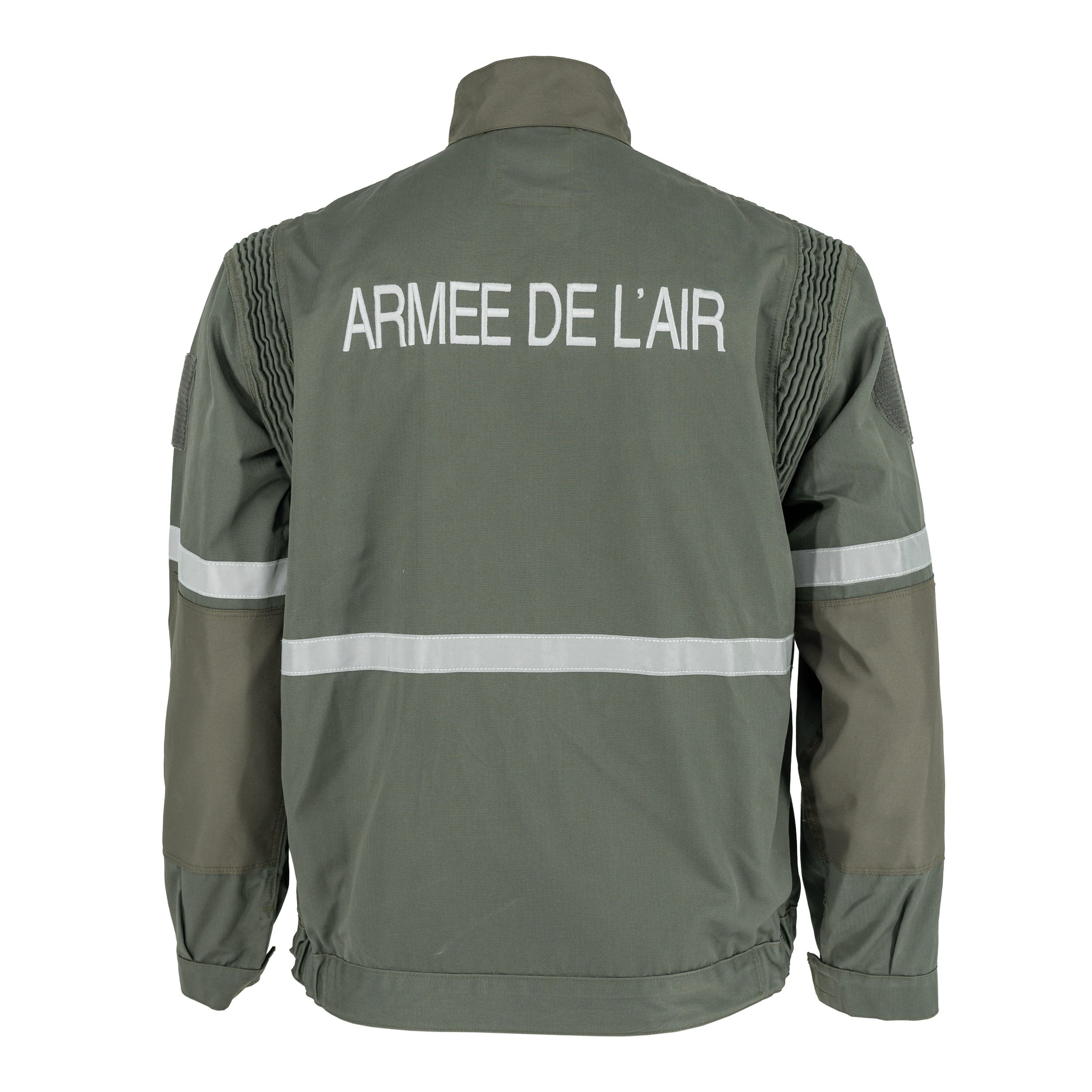 Veste courte pour mécanicien aéronautique de l'armée française avec inscription ARMEE DEL'AIR brodée dans le dos et sur le rabat de la poche avant droite. Bandes réfléchissantes.