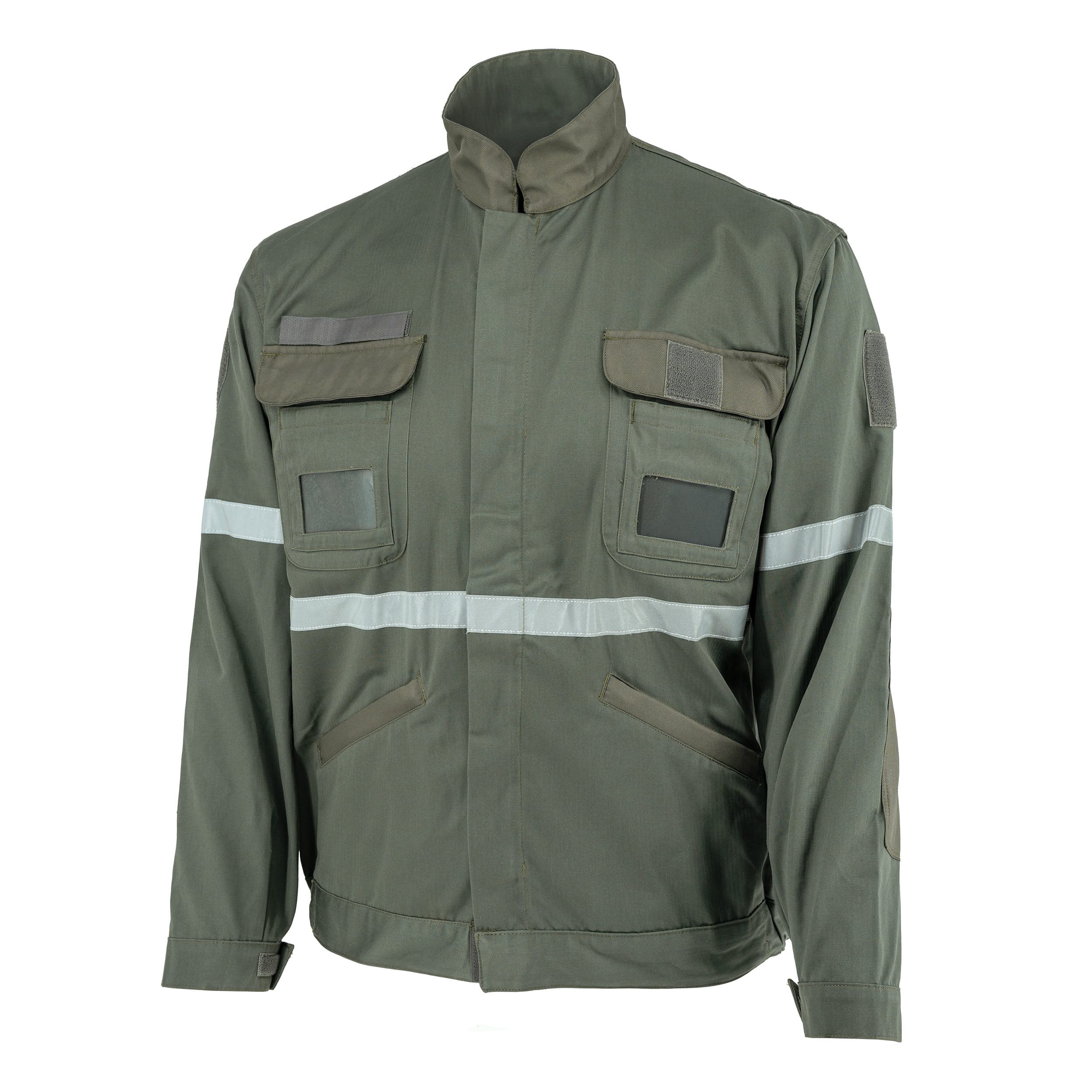 Veste courte pour mécanicien aéronautique de l'armée française avec inscription ARMEE DEL'AIR brodée dans le dos et sur le rabat de la poche avant droite. Bandes réfléchissantes.