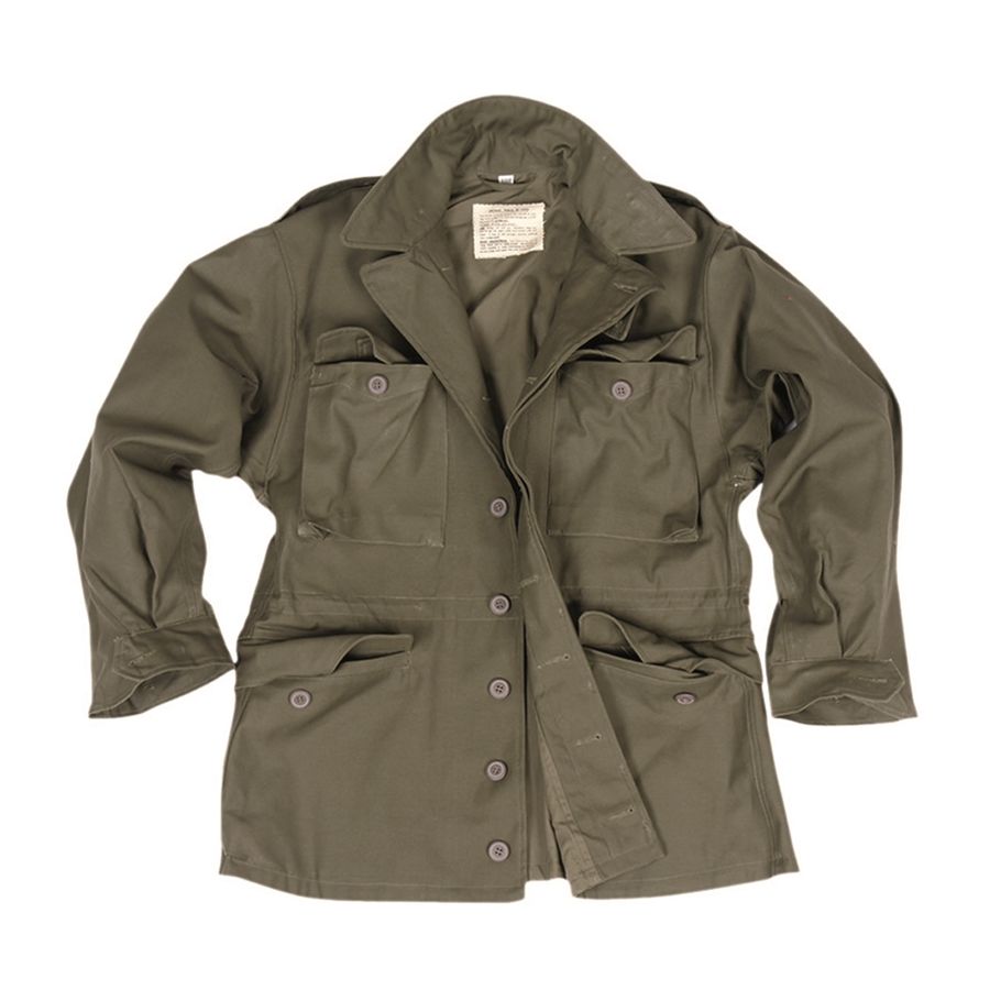 Reproduction fidèle de la veste militaire M43, prédécesseur de la célèbre veste M65. Utilisée depuis 1943 pour la première ligne. Pour temps froid. Deux poches poitrine, deux poches avant pour les mains. Patte de boutonnage. Épaulettes à boutons. Plus d'informations
