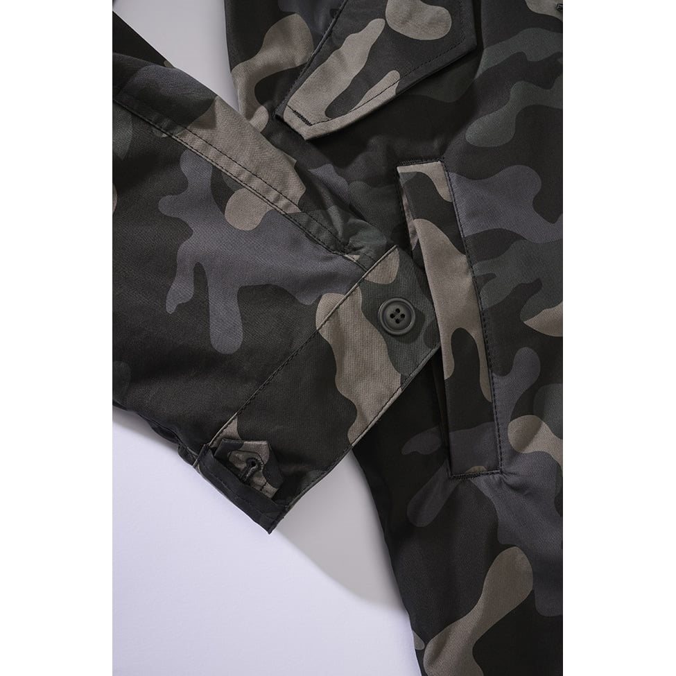 Veste élégante à la coupe agréable avec doublure isolante amovible. Elle se ferme à l'aide d'une fermeture éclair centrale de qualité recouverte d'une patte à boutons-pression. Les poches pour les mains ont des entrées en biais et sont suffisamment spacieuses pour accueillir des mains gantées. Une deuxième paire de poches dites « napoléon » est située au-dessus des poches pour les mains et peut être fermée à l'aide de rabats à boutons-pression. La capuche de la veste est spacieuse et réglable à l'aide de cordons. La taille de la veste est également réglable de la même manière. À l'arrière, la veste est nettement plus longue et dotée d'une fente, appelée fishtail, qui ne gêne en rien les mouvements lorsqu'elle est ouverte.