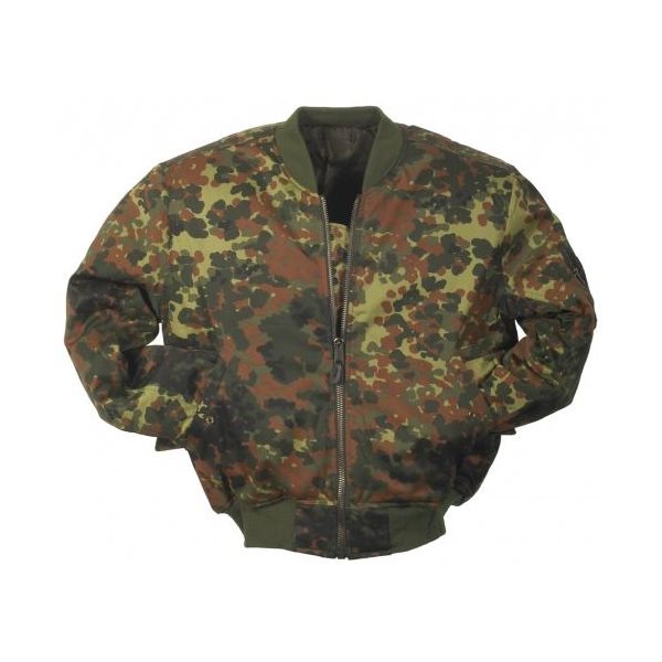 Veste de pilote fabriquée selon le modèle US Army MA-1. Fermeture par une solide fermeture éclair en laiton, recouverte de coutures diagonales. Deux poches spacieuses avec fermeture à bouton-pression. Deux poches intérieures. Plus d'informations