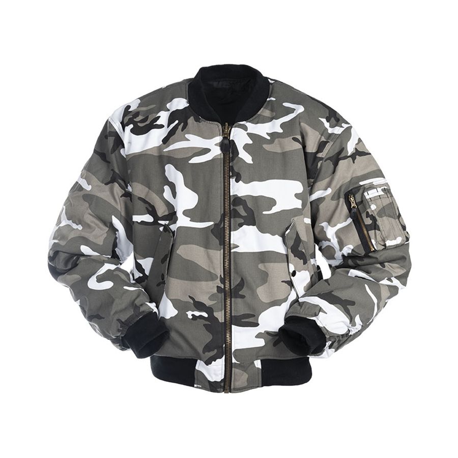 Veste de pilote fabriquée selon le modèle US Army MA1. Fermeture par une solide fermeture éclair en laiton, recouverte de coutures diagonales. Deux poches spacieuses avec fermeture à bouton-pression. Deux poches intérieures. Plus d'informations