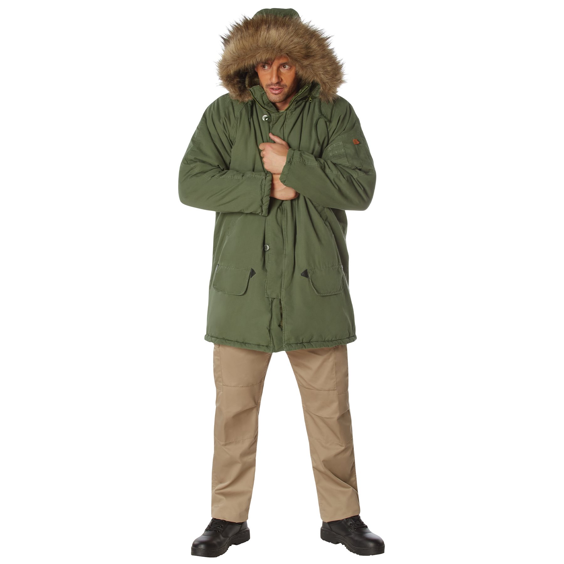 Parka de type N-3B, développée dans les années 50 pour le personnel navigant dans les régions extrêmement froides (par exemple en Alaska). La version du fabricant Rothco est conçue dans un style « vintage », c'est-à-dire avec un aspect légèrement délavé. Elle se caractérise par une coupe pratique et confortable, un tissu en coton agréable (la doublure est également en coton) et une excellente isolation thermique, ce qui permet de la porter même lorsque les températures sont bien en dessous de zéro. Nous la recommandons vivement.