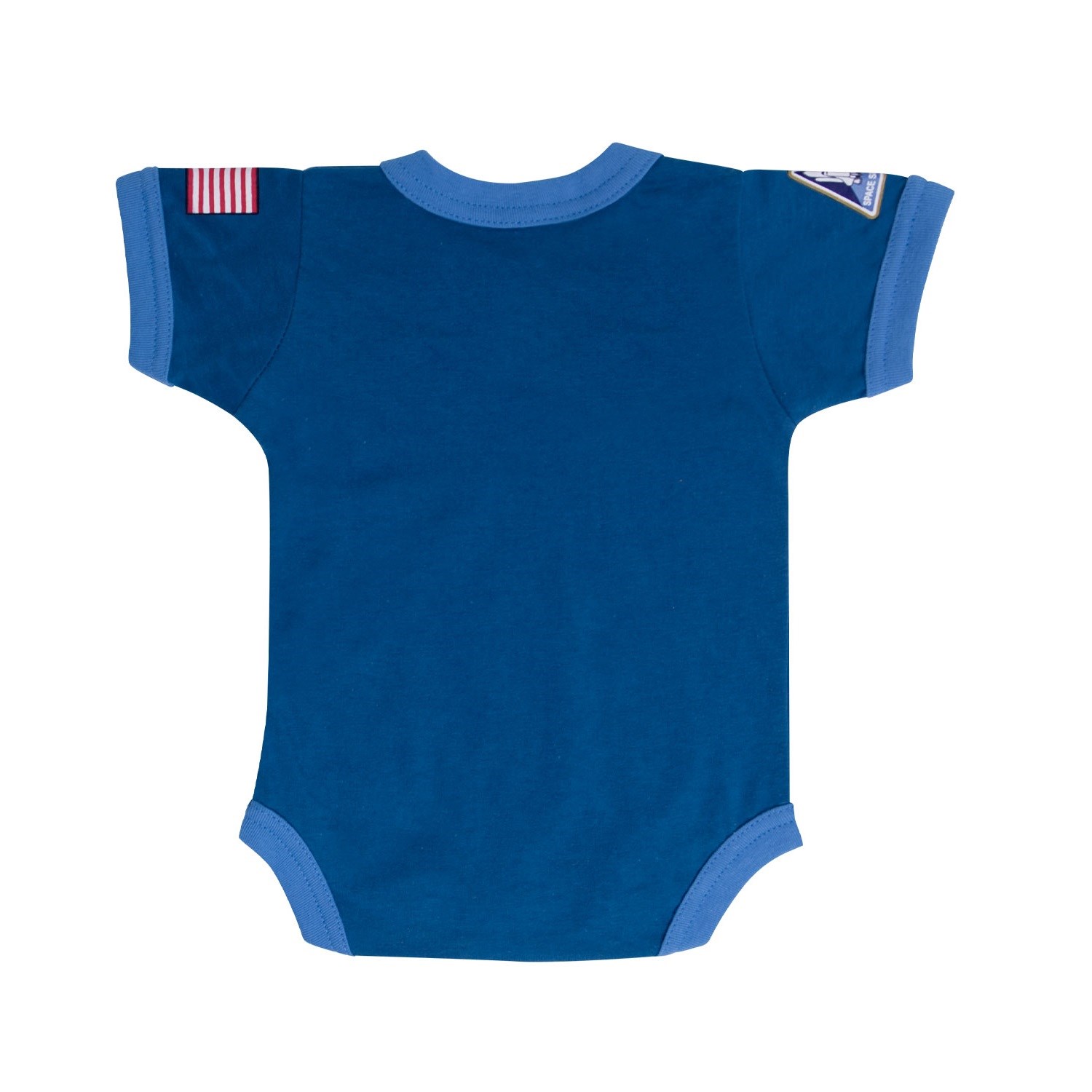 Body pour enfant qui conviendra à tous les futurs astronautes. De couleur bleu clair, il arbore le logo officiel de la NASA sur la poitrine, le drapeau américain sur les manches et un écusson Space Shuttle. Composition : 100 % coton. Plus d'informations